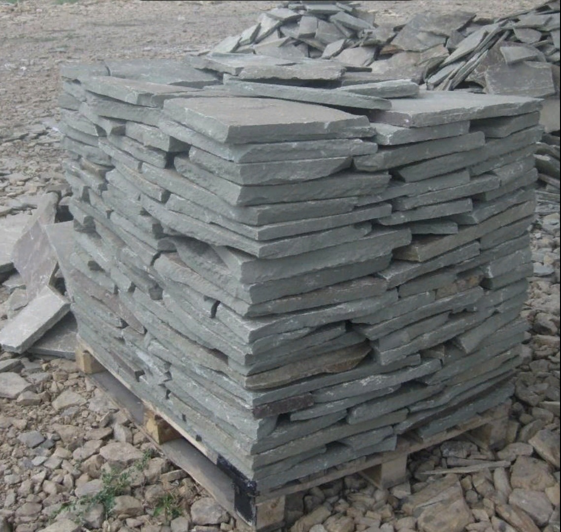 • Kamenclub.ru: Песчаник пластушка серо-зеленый (4,0 см- 5,0 см)  купить в Новокузнецке песчаник серо-зеленый, серый, зеленый песчаник рваный ландшафтный колотый 9000 руб/м3   фото КАМЕНЬ КЛУБ