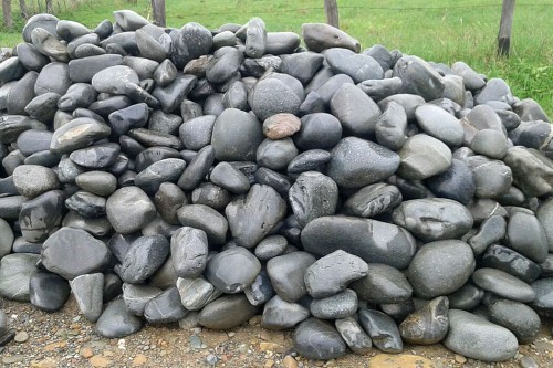 • Kamenclub.ru: Темно-серый валунчик фр.100-300 мм.  купить в Новокузнецке крупный природный камень серый, темно-серый, светло-серый речная галька большого размера окатанная 4500 руб/т   фото КАМЕНЬ КЛУБ